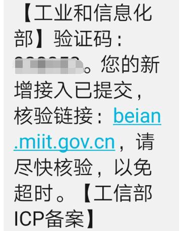 点击打开短信链接可进行验证:(验证网址:beian.miit.gov.cn )